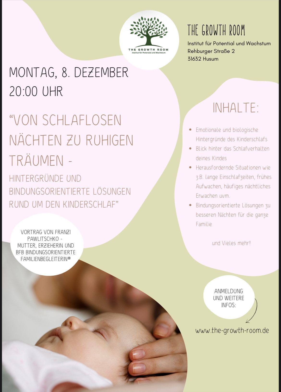 Ich bin Franzi, BFB bindungsorientierte Familienbegleiterin® und biete Beratungen zu den Themen Stillen, Beikost und Baby- und Kleinkindschlaf an. Online, bei Dir oder bei mir zuhause - so, wie es für Dich und Deine Situation am entspanntesten ist.